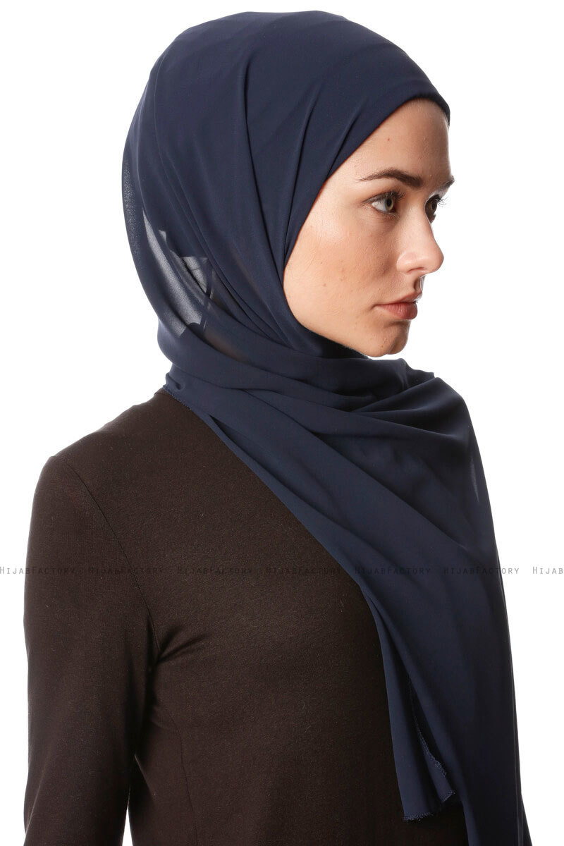 Derya - Hijab Pratico One-Piece Chiffon Blu Navy Scuro Ecardin in Turchia.