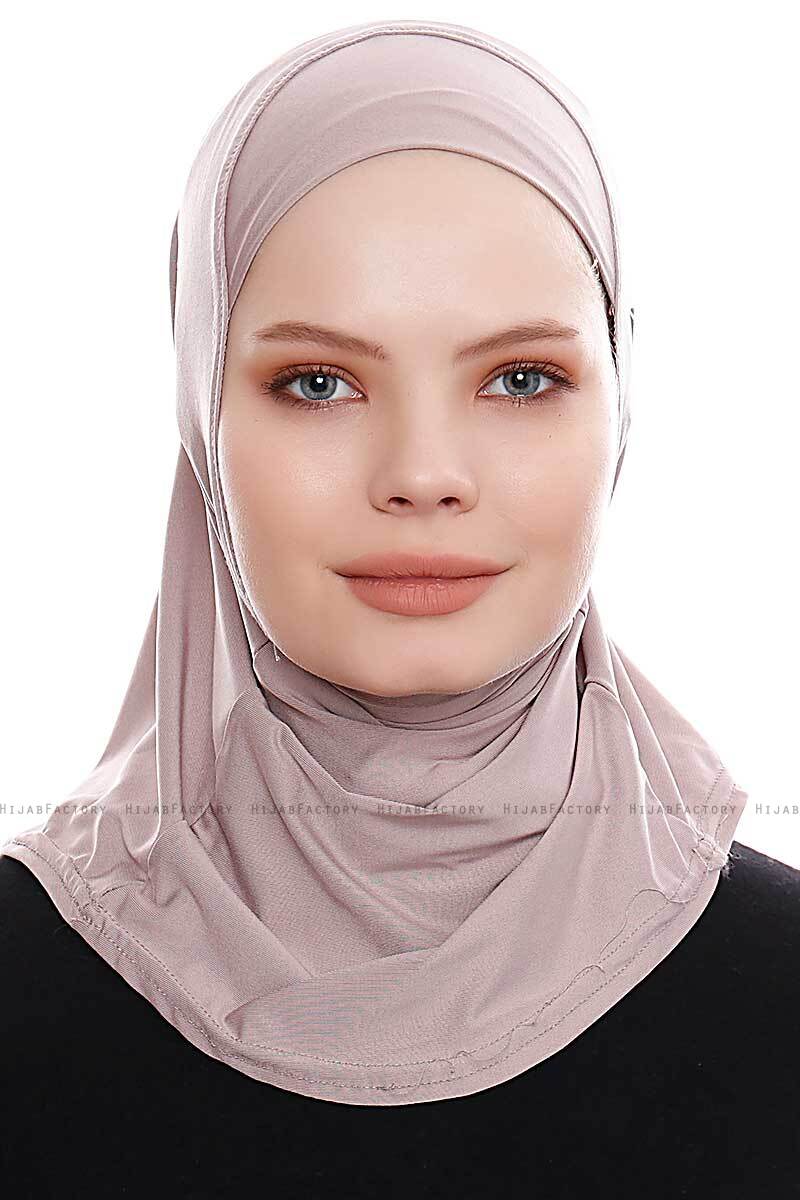 Elif - Grigio Pietra Sport Hijab di Ecardin. Il tessuto è in microfibra traspirante.
