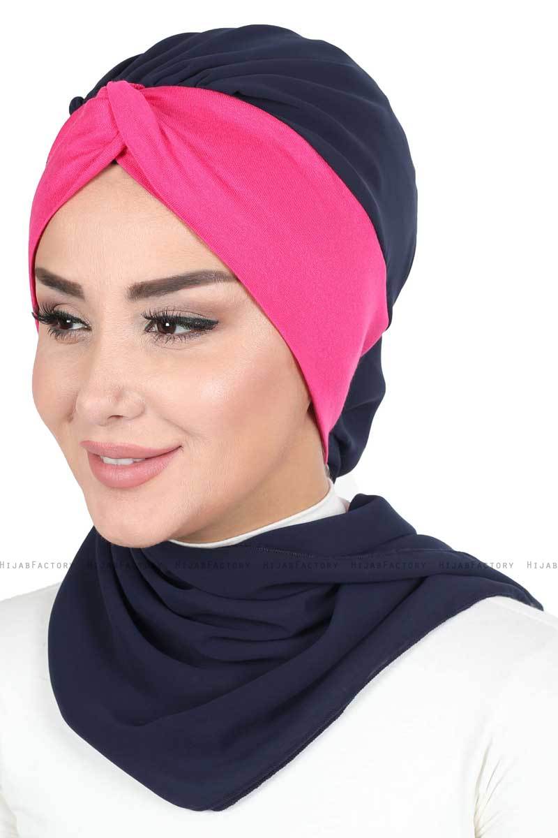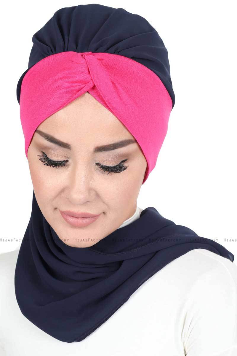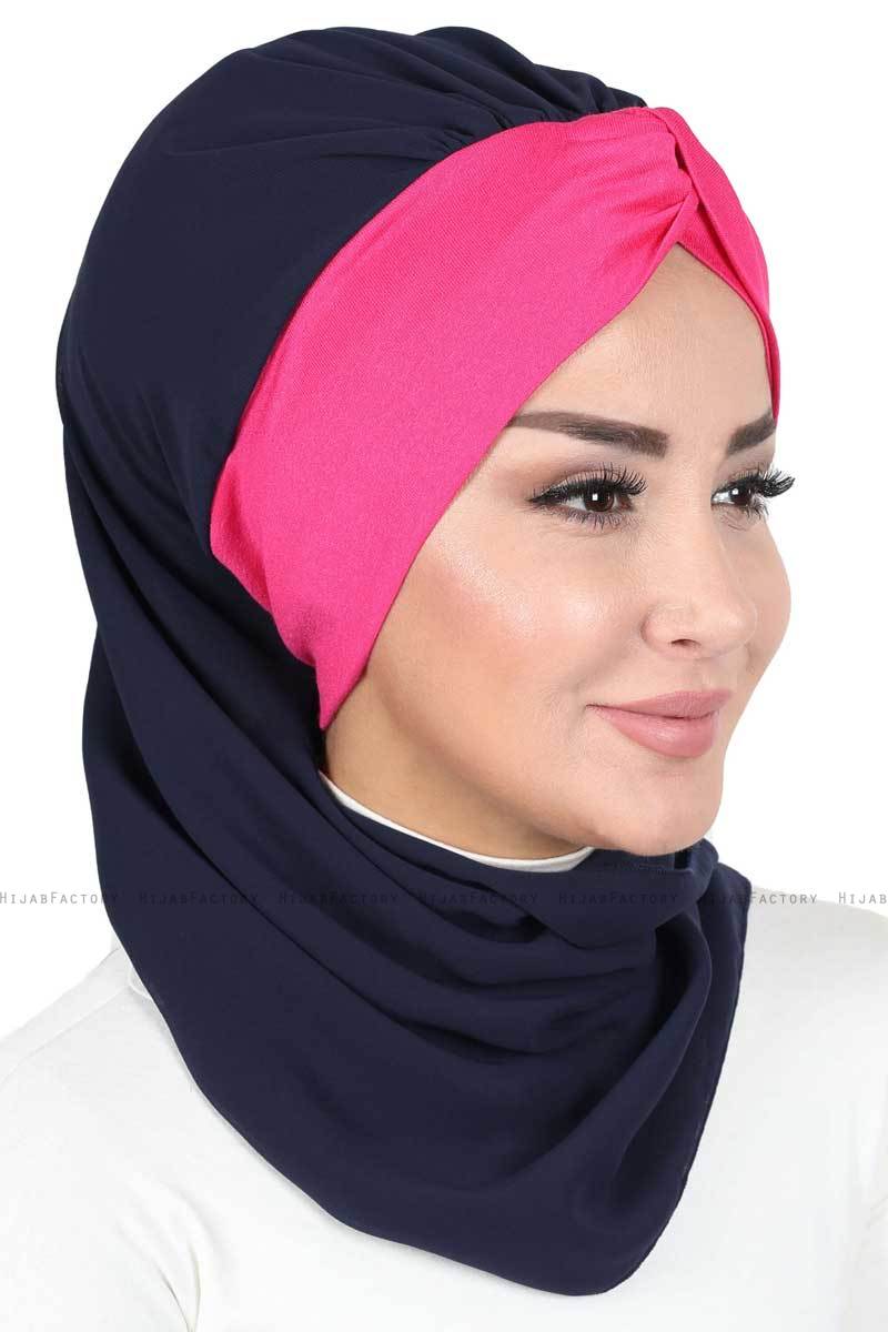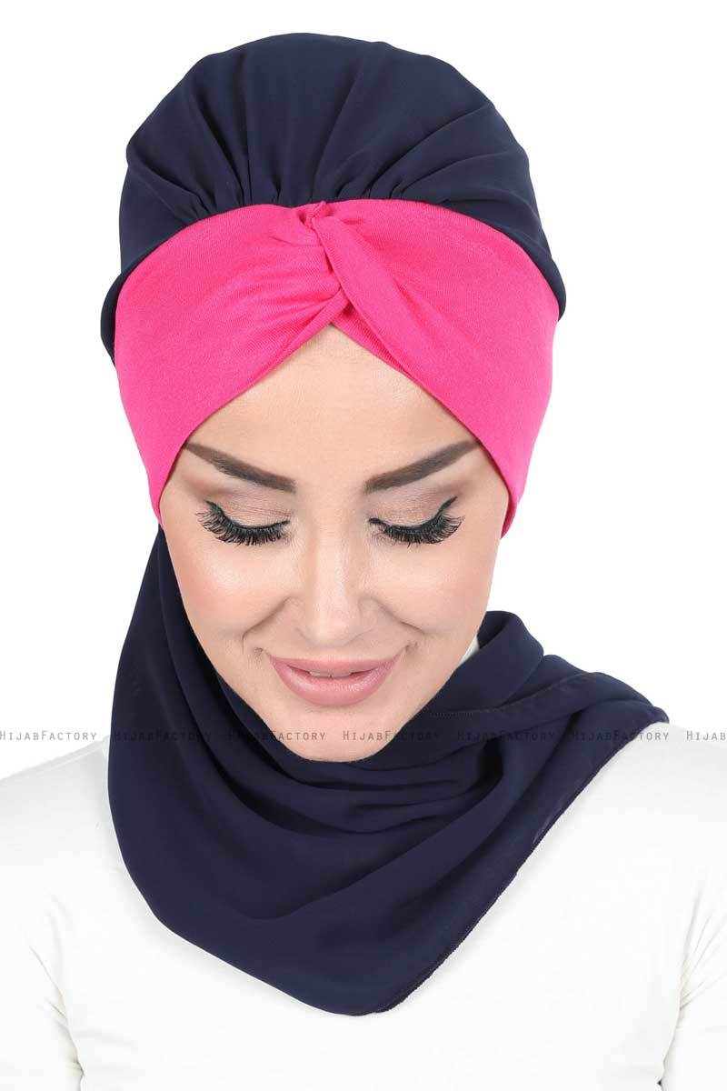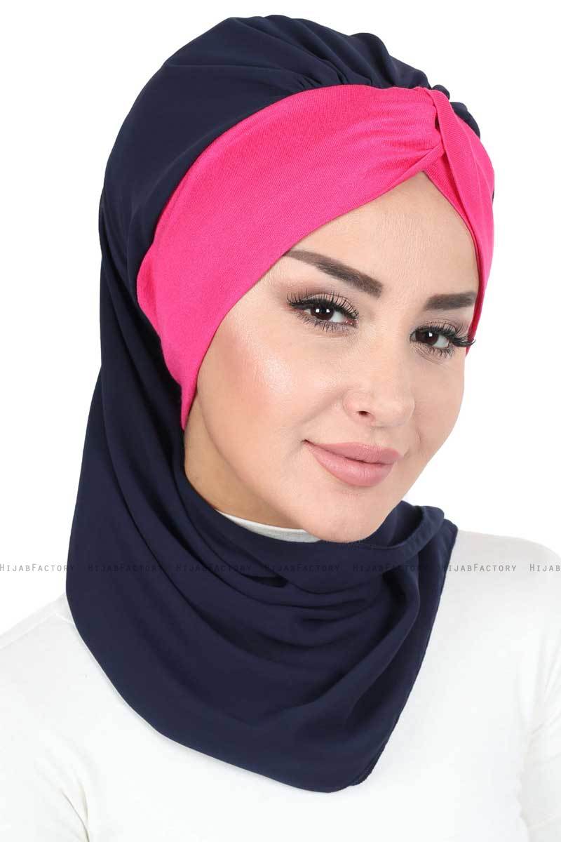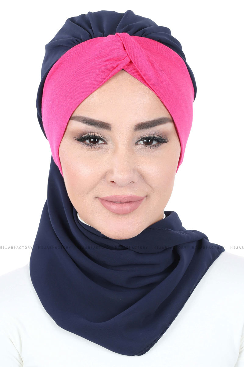 Gill - Hijab Pratico Instant One Piece Blu Navy & Fucsia Da Ayse Turban.