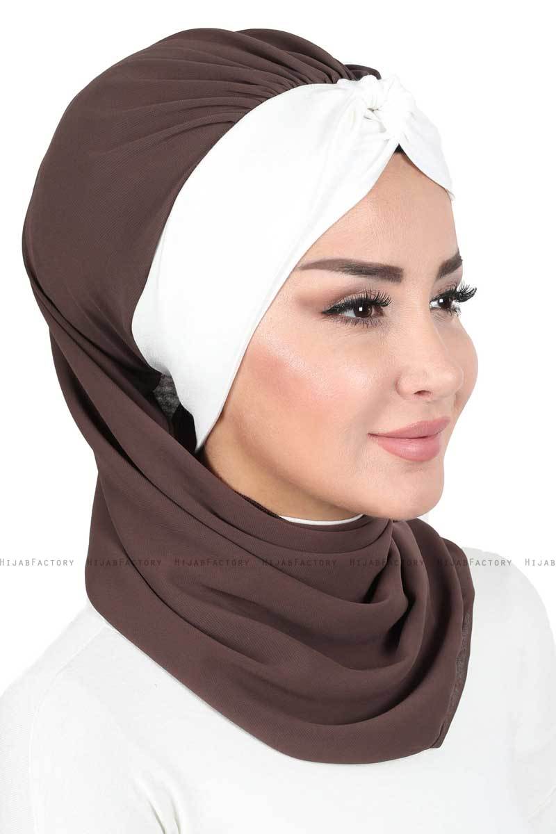 Gill - Hijab Pratico Instant One Piece Marrone & Creme Da Ayse Turban.