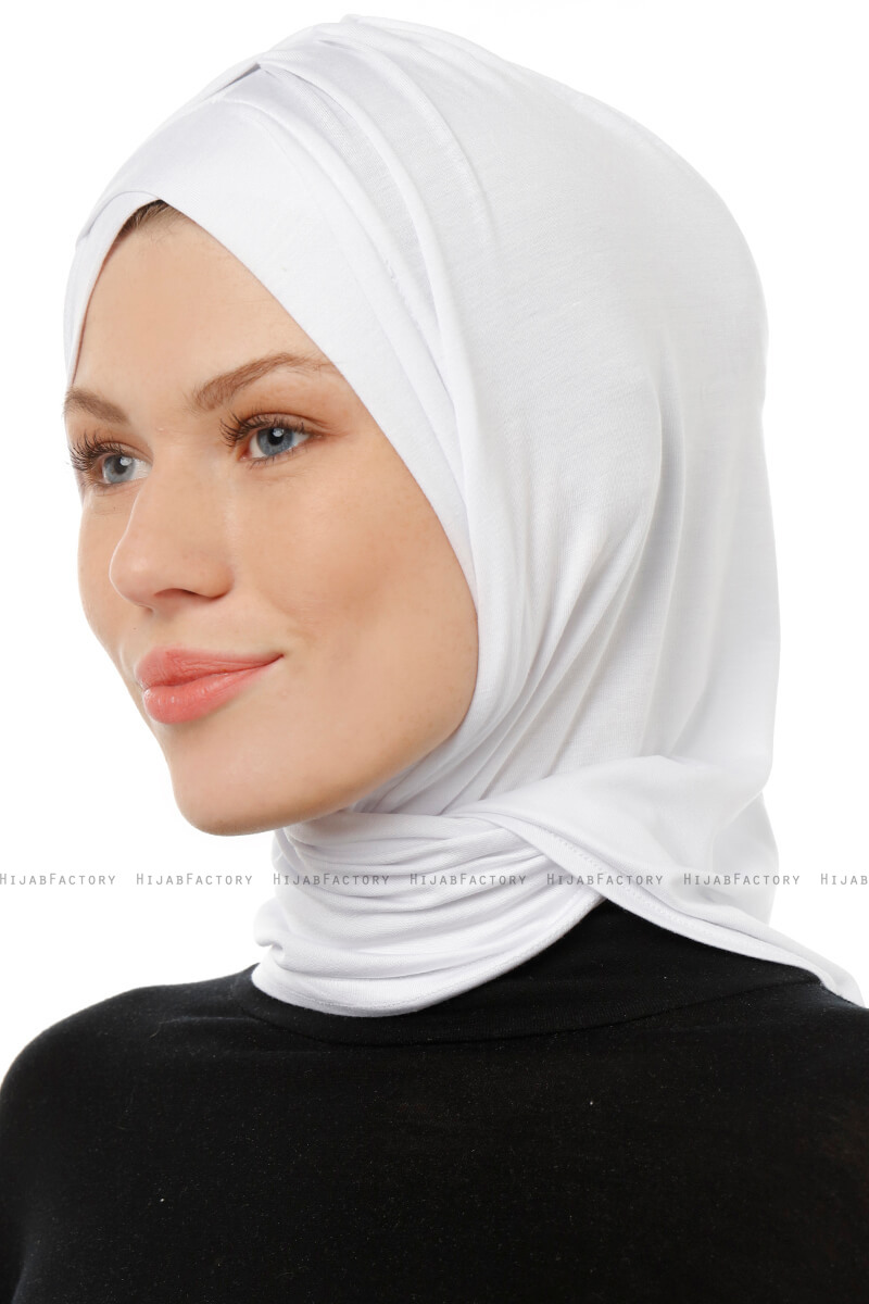 Isra Cross - Hijab Pratico One-Piece Viscosa Bianca Ecardin in Turchia.