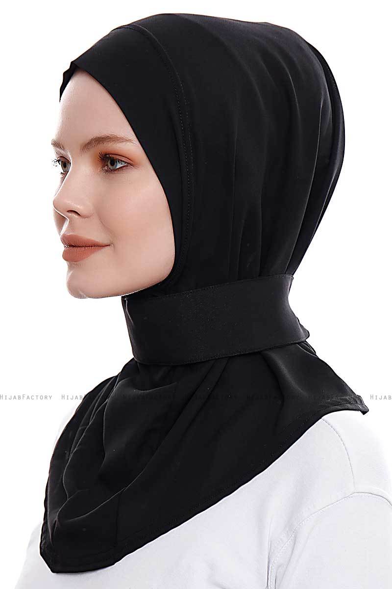 Narin - Hijab Crepe Pratico One Piece Nero Da Ecardin in Turchia.