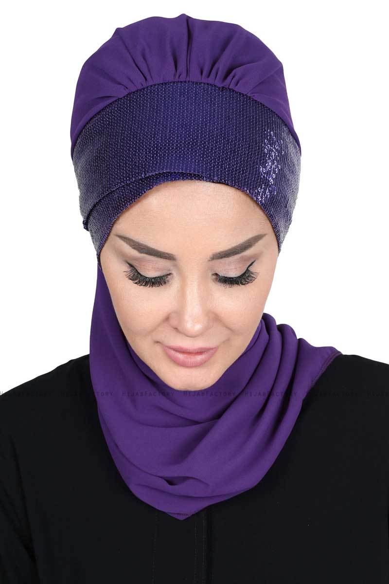 Olga - Hijab Pratico Instant One Piece Viola & Viola Da Ayse Turban.