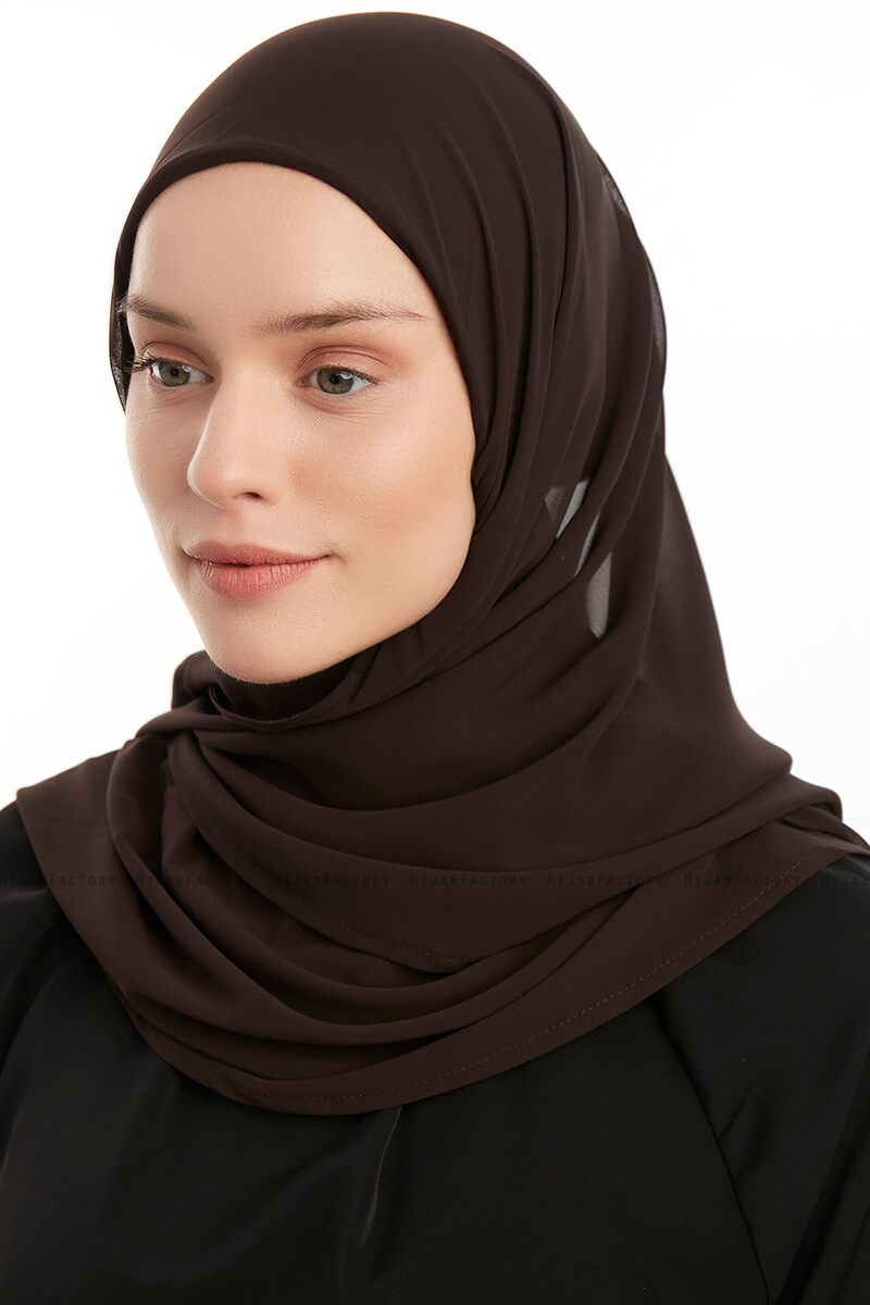 Eylem - Hijab Chiffon Marrone Pratico One Piece Da Ecardin in Turchia.Hijab in chiffon monopezzo. Con Sottofoulard In Viscosa.