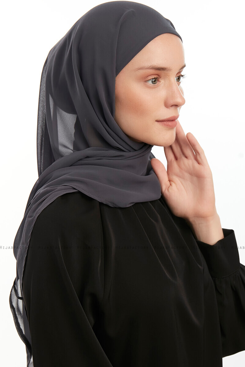 Sahar - Hijab Chiffon Antracite Pratico One Piece Da Ecardin in Turchia.Hijab in chiffon monopezzo. Con Sottofoulard In Viscosa.
