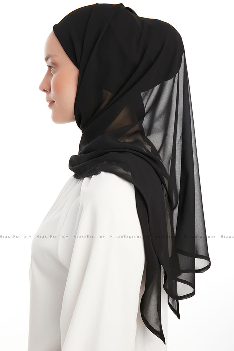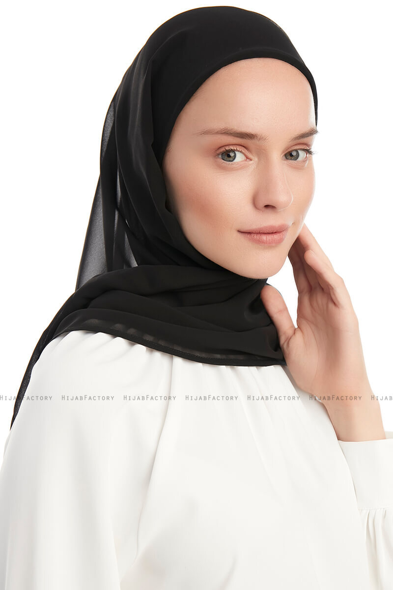 Sahar - Hijab Chiffon Nero Pratico One Piece Da Ecardin in Turchia.Hijab in chiffon monopezzo. Con Sottofoulard In Viscosa.